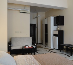 Замечательное место.Очень-очень чисто.Есть приточка с гор и кондиционер.Вкусные домашние завтраки.Комфортный большой номер. Приятное обслуживание и чудесные хозяева. Мини-отель в 5 минутах ходьбы от Центра города и развлечений.Тихо,в отличие от отелей на главной улице.Парковка во дворе. Мангал и качеля. Спасибо хозяйке за наш отпуск!)