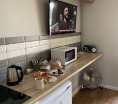 Понравилось: Все было просто великолепно. Уютный номер, достаточной площади. Парковка на территории жилого комплекса. Полностью укомплектованные номера, есть всё для того чтобы приготовить пищу и комфортно отдохнуть. Расположение очень удачное, можно спокойно выехать из города.
