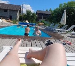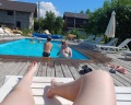 Очень красивая база отдыха, безумно красивый, ухоженный сад, чистый бассейн, приветливый персонал. Очень уютные, красивые домики. Приехали всего на сутки, остались в полном восторге! Спасибо за гостеприимство. Ещё и недорого. Приедем к вам ещё 100%