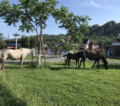 Красиво, горы вокруг, есть баня, есть бассейн, есть телевизор, хоть и работает так себе, но это не главное, есть душ, есть WiFi. Хорошее место для остановки