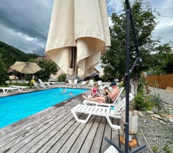 замечательные хозяева, встретили очень гостеприимно, номера очень комфортные,суперские , территория просторная, ухоженная ,бассейн всегда очищенный ,газон покошен, кондиционеры отличные как в холодную погоду так и в жаркую ,в номерах имеются фен,полотенца,одноразовые шампуни ,гели и тд,очень понравилась баня с чаном влажность очень хорошая ,в чан добавили цветочки.В общем будем сюда возвращаться вновь и вновь
