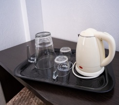 У нас был бесплатный трансфер, удобно, с городом и ценами ещё не были знакомы, а тут довезли. По дороге Сергей обрисовал что можно посмотреть в шаговой доступности (Олимпийская набережная, Сочи парк). Чем мы и занялись в первые дни прибывания. Номер чистый, каждый день убирали, раз в два дня замена полотенец, оценили кондиционер, после прогулок приятно вернутся в прохладу. Так же есть телевизор и холодильник.