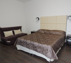 Возможно размещение еще 4-х человек в номере (за доплату). В номере есть душ, туалет, туалетные принадлежности, тапочки, фен, полотенце (вкл.пляжное), цифровое телевидение, телефон, интернет, кондиционер, холодильник, сейф. Халаты по требованию-бесплатно!