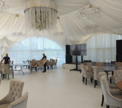 Очень крутая организация, деление зон, ресторан, банкет, отель, бассейн - все на высоте! Декор внутри почти не был нужен, т.к. шатры и залы уже готовы для Вашего торжества. Еда просто восхитительна, мы дегустировали и до, и на самом мероприятии)) всем всё безумно понравилось и очень хвалили (мы правда переживали за эту составляющую, т.к. бывает стол полон, а кушать нечего - тут же абсолютно другое дело - и красиво, и вкусно, и эстетично, просто божественно))