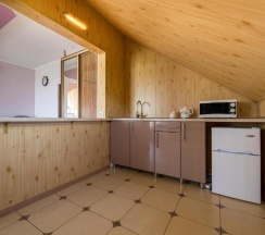 Есть небольшая кухня, можно сидеть за большим столом , можно во втором помещении за небольшим столом) нанести мамочку на лицо и отдохнуть на шезлонге!