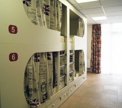 Отличное место! Чисто, светло, не тесно. Хорошие кровати и постельное бельё. Строго соблюдается режим тишины. Постираться, посушиться погладиться - всё есть. Хорошие санузлы. Немного "уставшая" мебель на кухне, но не критично