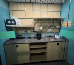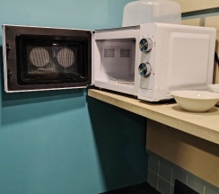 В номерах чисто, убираются каждый день (можно отказаться), на этаже была кухня с чайником, микроволновкой, посудой.
