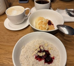 Меню на утро однотипные, меняется только каша. Но я всегда за то, чтобы хоть чуть-чуть перекусить и выпить кофе с утра и пойти уже на прогулки чем идти и искать где бы перекусить.