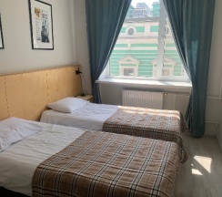 Мягкие кровати, удобные одеяла и подушки, холодильник в номере, фен, вешалки, туалетный столик, все что нужно, двум подругам.