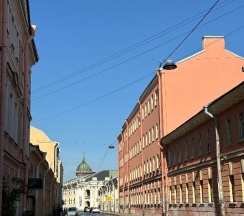 Окна номеров выходят на 2 стороны- ул Ломоносова и Апраксин двор-рынок.