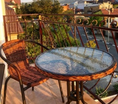 Отдыхали в сентябре 2024 года, отличное место, красивая небольшая территория, плюсы это бассейн без ограничений по времени. На территории есть мангал, столики, детские каталки, небольшая детская площадка (качели и горка). Перед бронированием хозяин Захарий прислал видео по доступным номерам, когда приехали предварительно перед заселением номер ещё раз показали, все чисто. Также в здании отдельно имеется общая кухня со своей посудой, стаканами, бокалами и стиральными машинами, это огромный плюс когда с детьми. Доступ на территорию гостевого дома закрыт, у каждого отдыхающего есть свой магнитный ключ, чужих нет, рядом есть парковка, также можно поставить авто внутри на территории. Нам понравилось, тихое и уютное место, вечером можно спокойно посидеть, детей /6лет/ можно спокойно отпустить одних и они сами гуляли на территории гостевого дома. До моря недалеко 10 минут неспеша. А ещё хозяин отличный винодел и на месте вы можете оценить и приобрести вино и чачу.