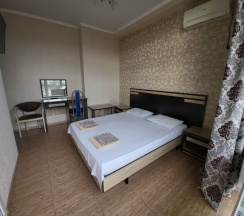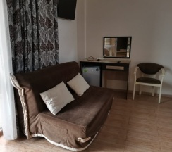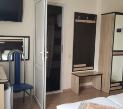 Просторный номер для троих. Большая двуспальная кровать и раскладной диван. В номере шкаф, телевизор, туалетный столик с зеркалом. Чайник в холле. Кондиционер на тепло не работал, было прохладно