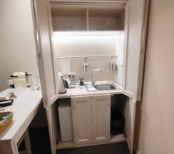 Отличная гостиница, вежливый персонал, прекрасное местоположение. В номерах убираются каждый день, в номере есть кофемашина и капсулы с кофе, чайник и пакетики с чаем
