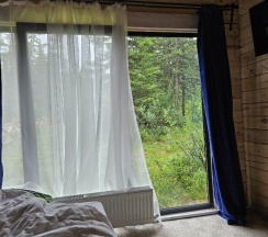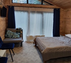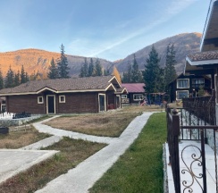 Замечательные домики из кедра, со всеми удобствами, с зоной отдыха на улице. Домики расположены прямо в лесу. А какие виды вокруг, а аромат леса, пение птиц, белки на ёлках…. Супер!!! Хорошие завтраки.