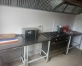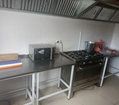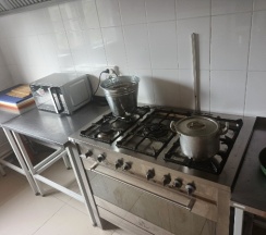В наличии профессиональная кухня, которую предоставляют в пользование. Газовая плите, холодильник, мойки. Супер!