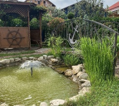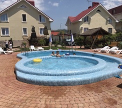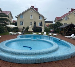 Расположение очень удачное, есть небольшой ухоженный сад, качели, беседки, мангалы, бассейн на территории.