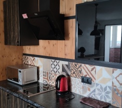 Понравилось: Отличные апарты. Даже лучше чем па фото. Очень чисто. Остались довольны! Есть все необходимое. Расположен в центре. Проблем с парковкой не было, находили место возле дома без проблем. Рядом есть магазины и кафе. Аллейка для прогулок и набережная. До аквапарка на машине 15 минут. В следующий раз только к вам!