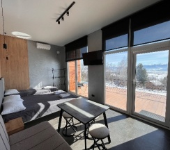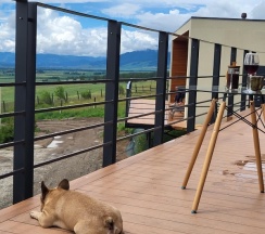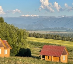 Сказочно прекрасный вид на Уймонскую долину! Своя огромная терасса у домика это бонус! База прекрасная! Кто хочет зависнуть от суеты и любоваться пейзажем 100% сюда!