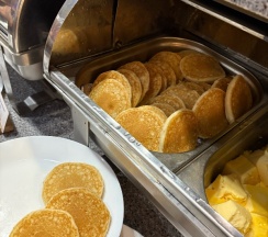 Номер чистый, опрятный. Банные халаты, полотенца, душевые принадлежности, тапочки. Завтраки приемлимые. Персонал приветлив и отзывчив.