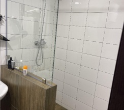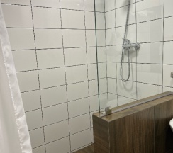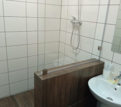 Не хватает ограничителя для двери в ванну. Ручка двери долго не протянет при ежедневных столкновениях со стеной.