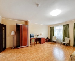 Номер категории Семейный 2х комнатный подойдет для размещения до трех Гостей. В номере удобная двухспальная кровать, диван в просторной гостиной, письменный стол, кресло, чайная станция, телевизор, холодильник, кондиционер, фен, тапочки. В ванной комнате душевая кабина, предоставляется набор косметических принадлежностей.