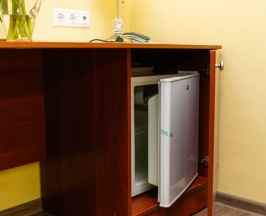 Номер для комфортного проживания двух гостей. В номере удобные две односпальные кровати, письменный стол, телевизор, холодильник, фен, тапочки. В ванной комнате душевая кабина.