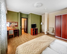 Номер категории Семейный 2х комнатный подойдет для размещения до трех Гостей. В номере две удобные односпальные кровати, диван в просторной гостиной, письменный стол, кресло, чайная станция, телевизор, холодильник, кондиционер, фен, тапочки. В ванной комнате душевая кабина, предоставляется набор косметических принадлежностей.