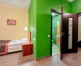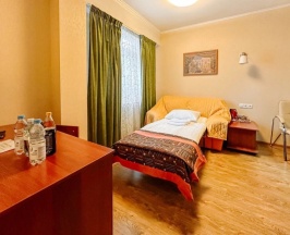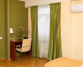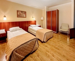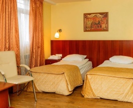 Номер категории Комфорт для проживания одного или двух Гостей. В номере две удобные односпальные кровати, письменный стол, чайная станция, телевизор, холодильник, кондиционер, фен, тапочки. В ванной комнате душевая кабина, предоставляется набор косметических принадлежностей