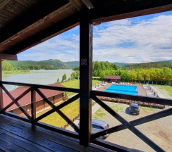 Отличная база, отдохнули с душой! Порадовало что обошлось без шумных компаний. Большой бассейн разделен на 3 части: взрослый, детский около 80-90 см глубиной , и еще один детский около 40-50 см глубиной теплый! Шезлонгов навалом, зонтики, территория большая, всем есть место, большая беседка на 6 столиков с чайником, печкой, микроволновкой, раковиной, куча мангалов и решетки, печка для варки в котелке, уголь купили через дорогу в магазинчике. Кстати через дорогу куча кафе и очень хороший магазин. Номер стандарт большой, вид на катунь шикарный, на балконе мебель, по вечерам понравилось там пить травяной чай, в номере душ, комплект из 6 полотенцев, чайник, сервиз, стол, стулья, большая кровать, удобная, шкаф, в общем все что нужно. Порогов нет поэтому река не шумит. Есть баня и большая закрытая парковка. Все продуманно до мелочей, хозяева видно что стараются, спасибо вам за настоящий отдых! Мы рады что к вам выбрались, приедем ещё!
