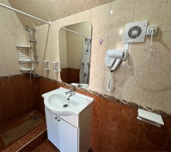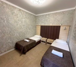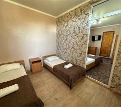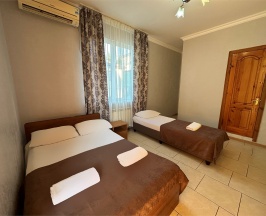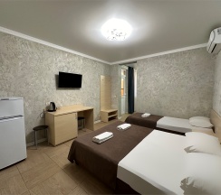 Просторный Трехместный номер с большой двуспальной кроватью и односпальной кроватью. Для удобства гостей в номере имеется санузел, душ, холодильник, телевизор, чайник, кондиционер, чайный набор посуды.