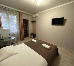 Уютный Двухместный номер с большой двуспальной кроватью. Для удобства гостей в номере имеется санузел, душ, холодильник, телевизор, чайник, кондиционер, чайный набор посуды.