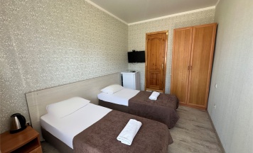 Уютный Двухместный номер с двумя раздельными кроватями. Для удобства гостей в номере имеется санузел, душ, холодильник, телевизор, чайник, кондиционер, чайный набор посуды.