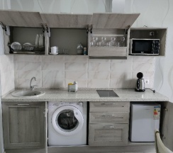 Есть конечно мелочи, которые можно доработать ( зеркало в ванной поржавело, ведёрко заедает при нажатии на нижнюю лапку(приходилось отковыривать его рукой), полотенца на кухне нет. Но всё это не критично для меня. Отдыхать тут комфортно. Персонал - оказывает сервис.
