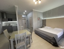 Замечательные апартаменты! Удобное расположение, все рядом. До вокзала 7 минут езды.Девочки на ресепшен приятные и отзывчивые. Вид шикарный, чисто, оснащение номера отличное, все есть. Набережная и пляж примерно 15 минут спокойным шагом. С удовольствием вернемся сюда вновь. Спасибо