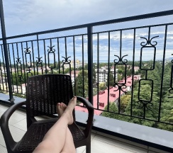 Отличный отель! Номера - квартиры-студии. Лучший вариант в Адлере - с учётом многолетнего опыта съёма квартир и гостиниц. Прекрасный вид с 11 этажа, уют и забота вежливого персонала, Огромная благодарность горничной Неле Александровне, кажется что она работает 24 часа в сутки. Надеюсь, руководство отеля знает об этом и ценит кадры, упорным трудом повышающие рейтинг отеля!