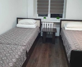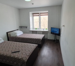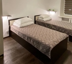 Просторный благоустроенный номер с двумя раздельными кроватями с ортопедическими матрасами. Дополнительно в номере для удобства гостей: телевизор, шкаф для хранения вещей, индивидуальное освещение над каждой кроватью с полкой.