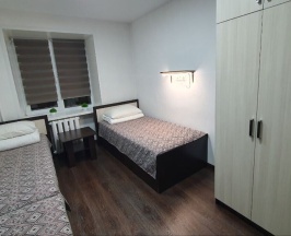 Просторный благоустроенный номер с тремя раздельными кроватями с ортопедическими матрасами. Дополнительно в номере для удобства гостей шкаф для хранения вещей, журнальный столик.
