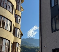 Расположение в самом центре посёлка. Рядом подъёмники в сторону Красной Поляны и Чёрной Пирамиды. Номер просторный, светлый, очень удобный. Приятный балкончик, вид с него был хороший - видно было и Эстонскую улицу и горы над ней. Шума не слышно было.