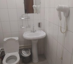 Останавливались на ночь, в столовой не ели, про столовую ничего сказать не могу, взяли 5 местную комнату -3400₽, комната огромная, окна с выходом на трассу, про шум ничего сказать не могу, уставшие были вырубились сразу, душ работал исправно, полотенце каждому выделили, чистое, белое, и постельное бельё чистое, не застиранное, пятен никаких, туалетная бумага была, плюс запасное лежало, мыло жидкое и всё, гель для душа, шампунь берите с собой, фен был, но не проверяли работал ли он.