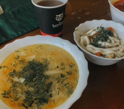 Останавливались поесть. Пока что - это лучшая придорожная кафе-столовая! Цены прекрасные , на двоих вышло 1000 рублей, при том, что брали первое и второе. Вкусно! Рекомендую однозначно!