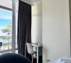 Здесь я ощутил шум волн на себе во время сна и это потрясающе. Все номера выходят на море. Большая кровать, удачное расположение кондиционера в номере, всё чистенько. Хорошая скорость интернета для непогоды это большой плюс. Столовая со своей кофе машиной и очень неплохой едой. В 10 минутах о.п. Мамайка. Отель рекомендую точно!
