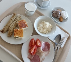 Особое спасибо питанию: в цену входят вкусные завтраки- шведский стол. Есть обед и ужин за отдельную цену. Цены демократичные! Рекомендуем!