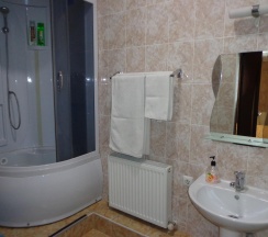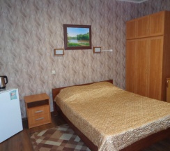 отдельный номер с двуспальной кроватью и раскладным креслом в цокольном этаже с высоко поднятыми окнами. оборудован цифровое ТВ, кондиционер, холодильник, сантехнический узел с унитазом, душевой кабиной, умывальником.