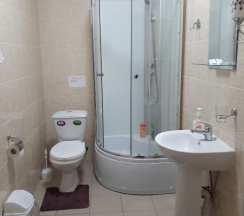 Жил в стандартных однокомнатных апартаментах. Большая комната с новой мебелью. Идеальная чистота как в комнате, так и, что важно, в ванной. Отлично, что присутствует старенький, но хорошо работающий кондиционер. Есть чайник, пара блюдец и кружек. Из несущественных замечаний это то, что уже слегка прощупываются пружины на матрасе и шумноватый холодильник. Но само наличие холодильника уже плюс. В общем и целом, думаю, я и даже буду останавливаться в этой гостинице, потому как, в целом, и впечатление она оставляет очень хорошее.