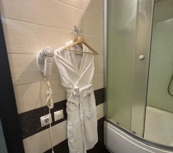 Не понравилось: Номер скромный, аскетичный. Неприятный запах унитаза. душевая кабинка сломана и подтекает. В номере стояла одна бутылка воды 300 мл, странный выбор для двух человек.