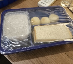 Завтраки подают в ланч-боксах, мы попробовали овсяную кашу, сырники и бутерброд с сыром и колбасой, и ещё зелень, огурчик и помидор. Если кому-то и этого мало, то рядом есть несколько кафе и ресторанов на любой вкус и кошелёк.