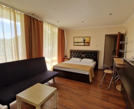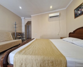 Комната люкс имеет дополнительное оснащение: WI-FI, Мини-холодильник, Микроволновая печь, Кухонный уголок.