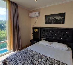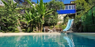 Это место для спокойного семейного отдыха. Как раз то, что мы хотели 🤗 В первый день не повезло с погодой - прогулялись через лес по набережной до центрального пляжа (идти не далеко, если вы не инвалид вполне легко, для людей в возрасте через каждые метров 30 примерно стоят лавочки для отдыха), второй день просто чилили возле бассейнов! Детям здесь 💯 понравится плавать в чистейших бассейнах. Персонал очень приветливый и доброжелательный, за порядком следят не только в номерах, но и в саду (кусты, цветы, всё ухожено и подстрижено👍🏻) Кому далеко до магазинов и доставка не везёт алкоголь и сигареты, хозяин Артур с удовольствием вас свозит до магазина😉
