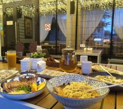 Хорошие номера, но нашем потёк потолок. На первом этаже шикарный ресторан где очень вкусно готовят