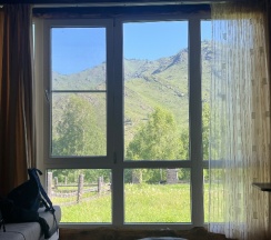 Нереальное место! Для Алтая застроенного базами и заборами чудный уголок рая. Не найдётся у меня слов,чтобы описать как тут классно!Актуально для людей замученных мегаполисами. Если вы на байках, квадроциклах, любитель пеших прогулок вам это место поверьте подойдёт. И при этом домик на четверых с панорамным окном. Удобная двухспальная кровать, диван. Дизайн с душой в эко стиле. И звезды Мишлена заслуживает баня, пожалуй это лучшая баня в которой я когда то была.